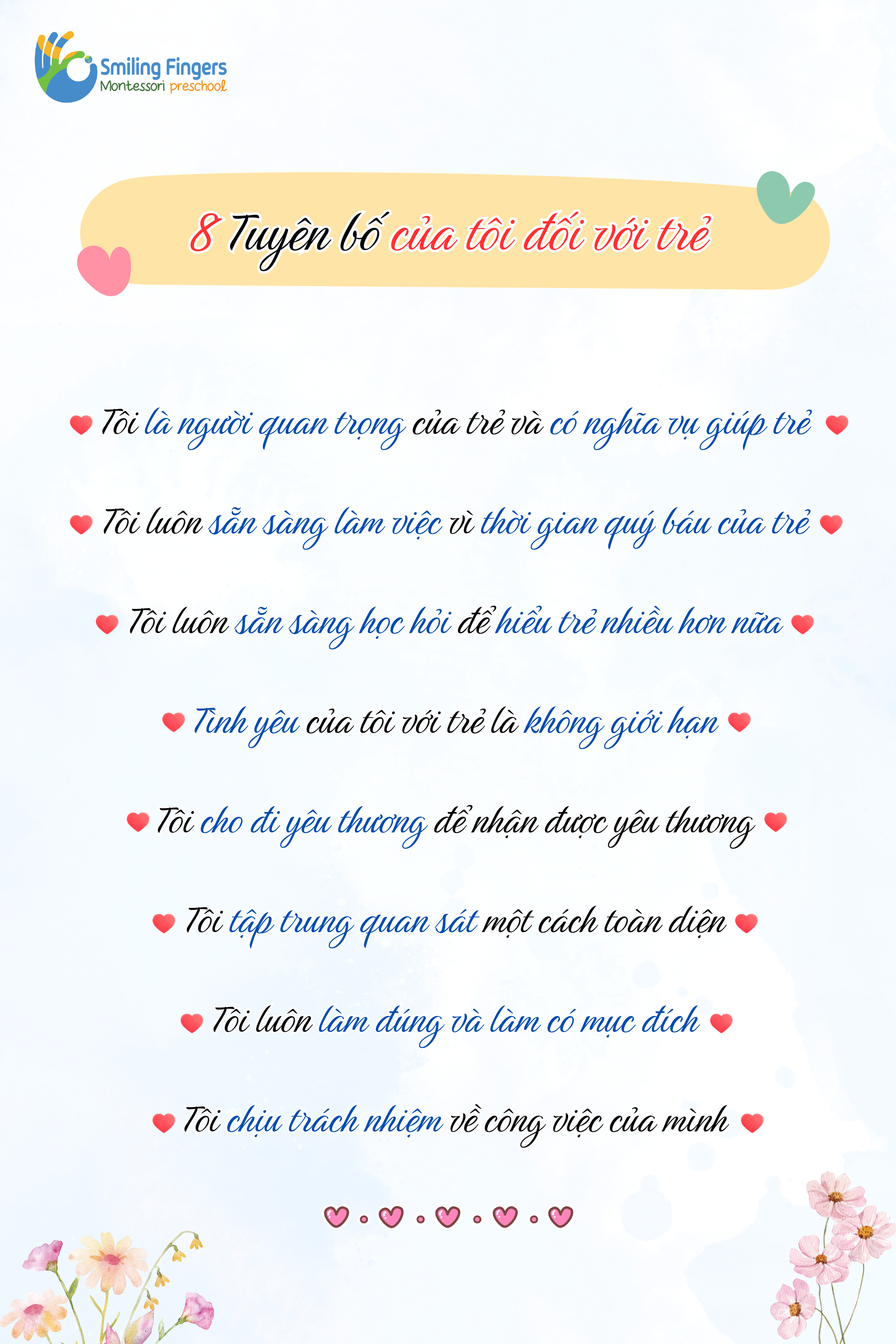 Niềm tự hào của Trường mầm non song ngữ Smiling Fingers chính là đội ngũ Giáo viên có sứ mệnh phụng sự trẻ em phù hợp với sứ mệnh chung của Trường.