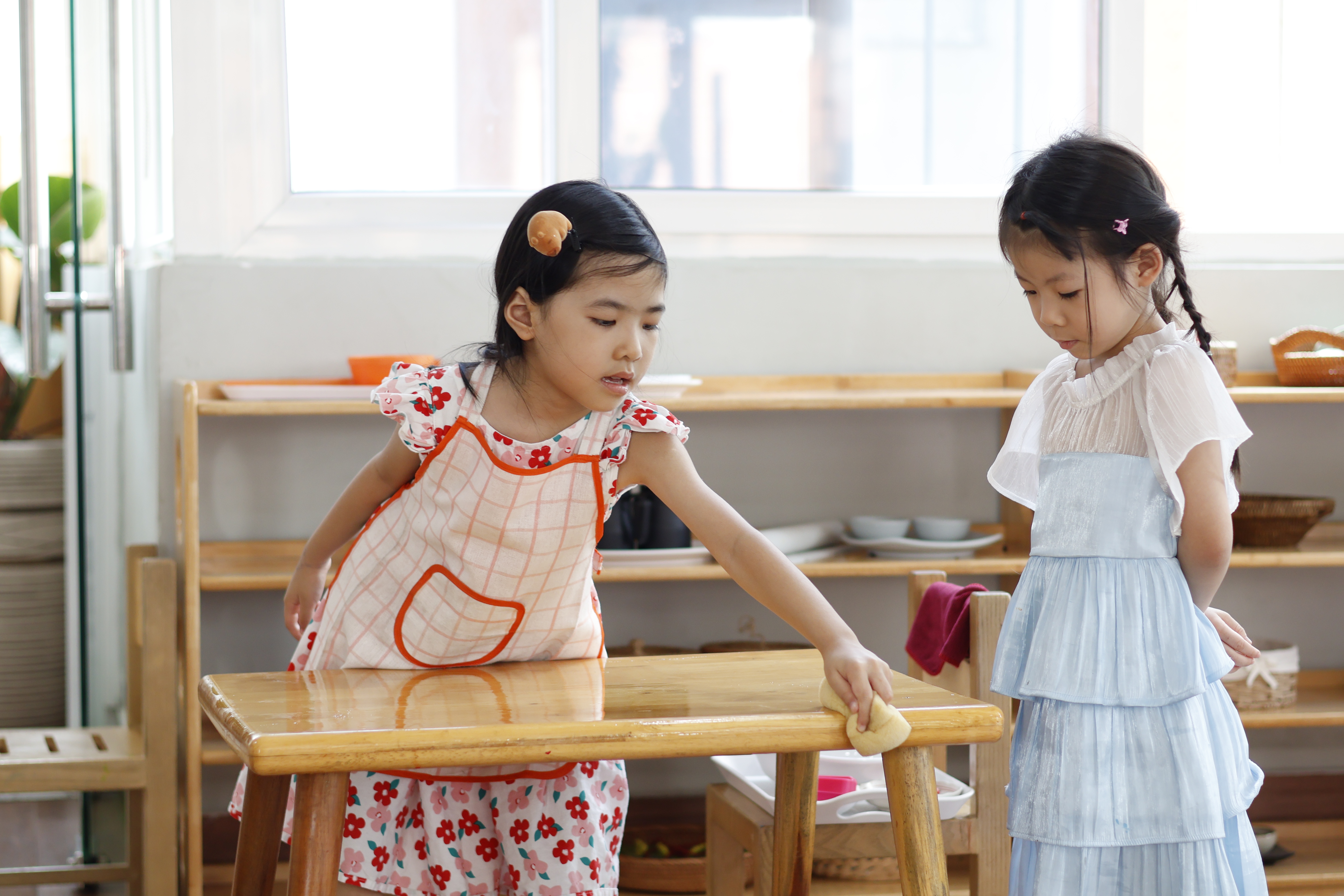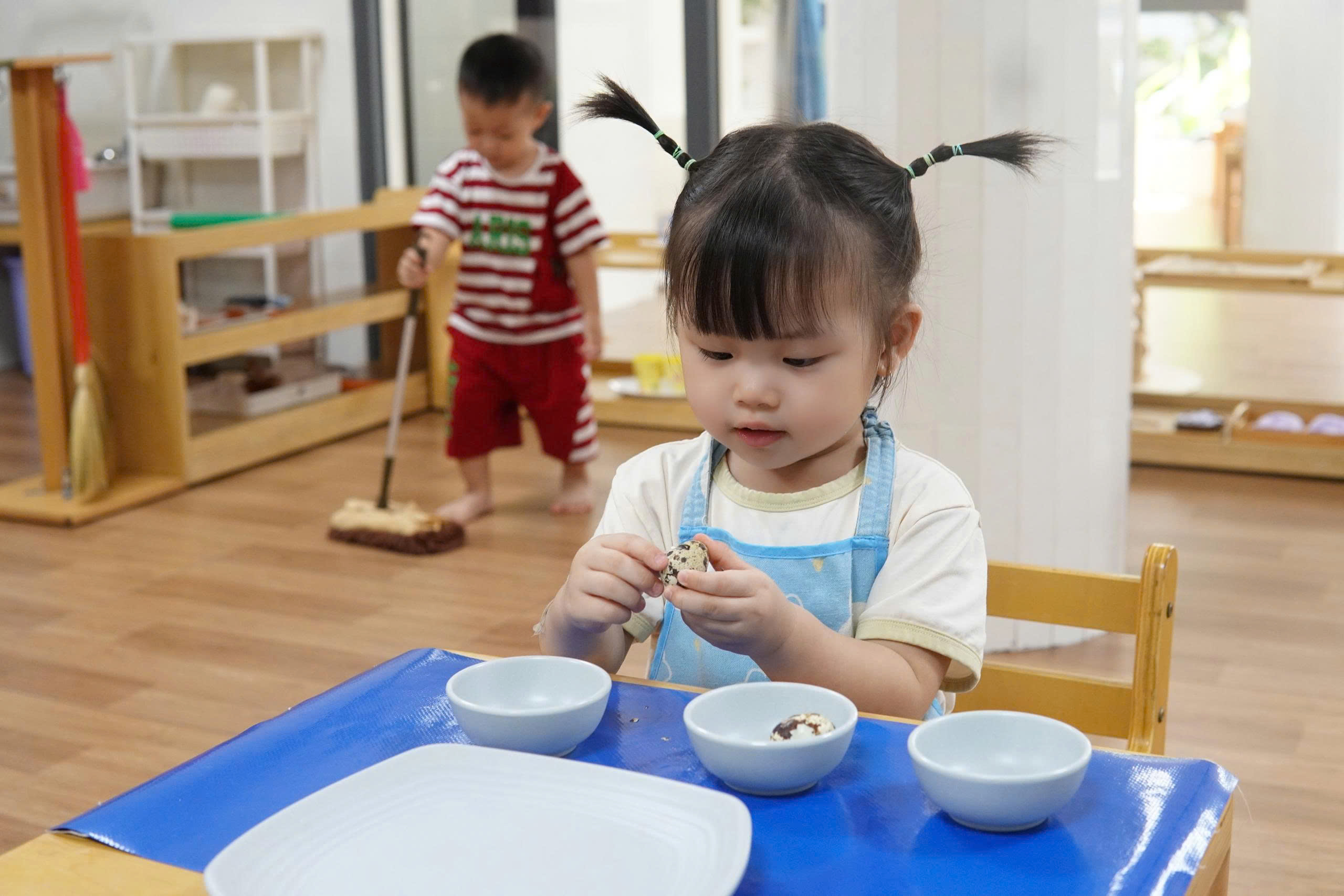 Ngoài ra, môi trường giáo dục cũng đóng vai trò quan trọng trong phương pháp Montessori. Không chỉ tạo điều kiện cho bé tiếp cận với các học cụ Montessori chuyên biệt hợp với độ tuổi, môi trường Montessori còn cần đảm bảo sự hài hòa, sạch sẽ, thiết kế phù hợp với nhu cầu của trẻ, có tính trật tự trong cách bố trí đồ vật cũng như cách sắp xếp các hoạt động.